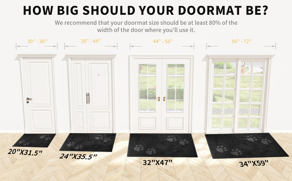We recommend that your doormat size should be at least 80% of the width of door where you'll use it.