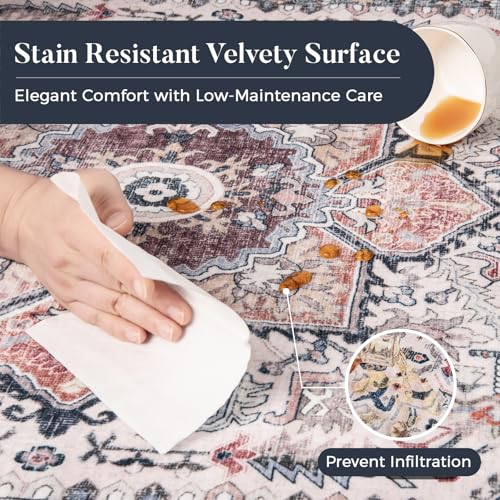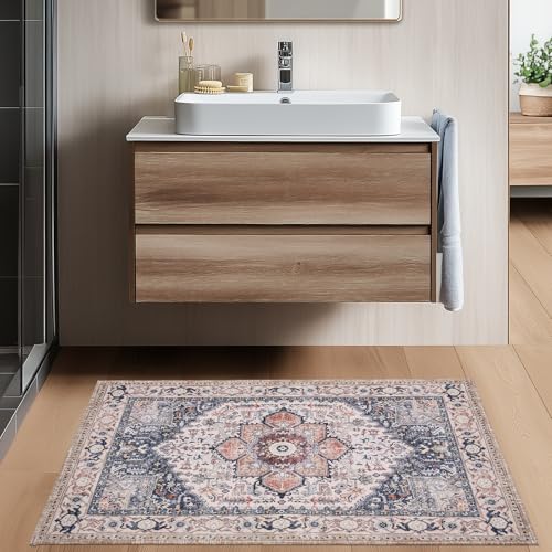 PURRUGS Vintage Farmhouse Boho Area Rug, Non-Slip Machine Washable Rug, Accent Oriental Carpet for Living Room, Dining Room, Bedroom, Entryway, Hallway and Kitchen